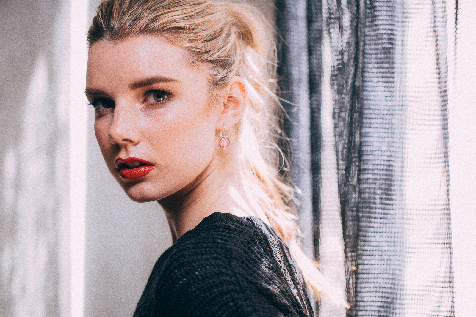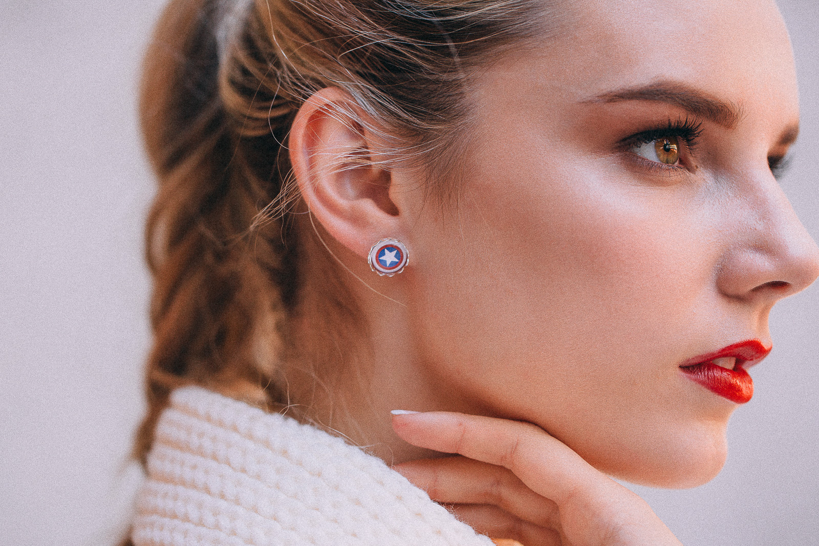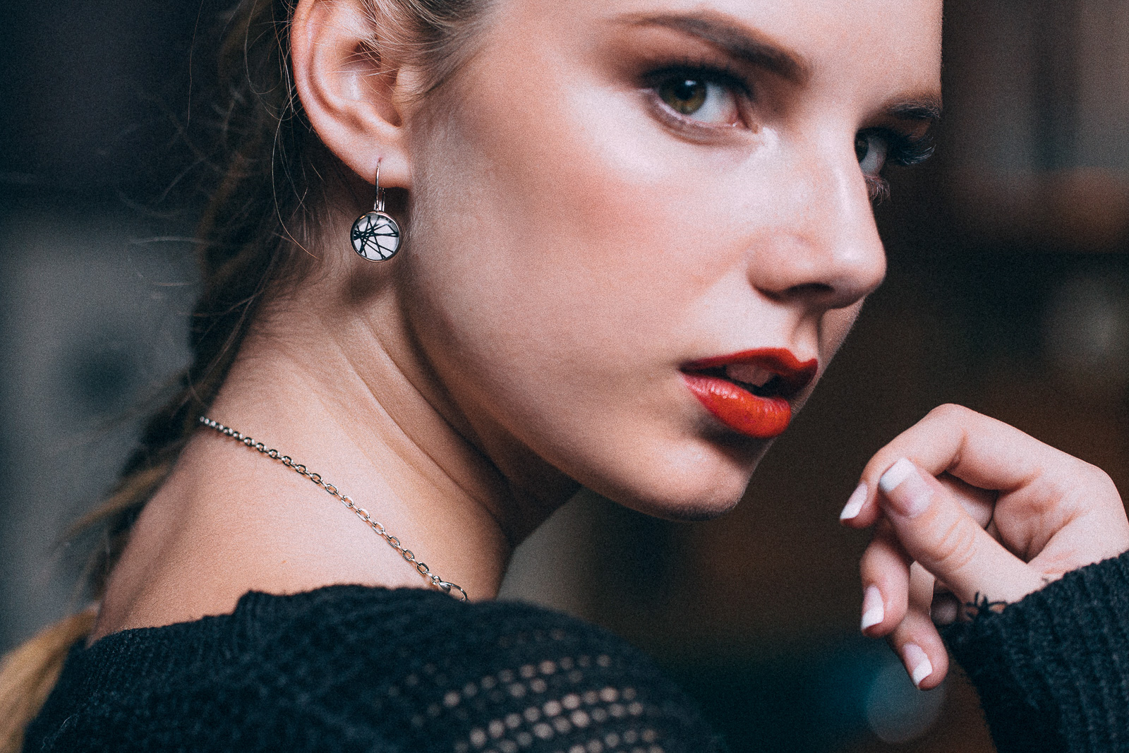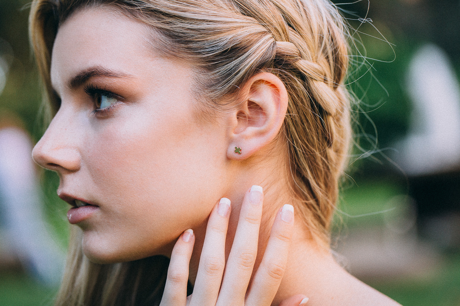 On the day we definitely made the most of our time. I took several lenses with me but decided to shoot with a 100mm 2.8 macro lens, as this meant I could quickly shift between portraits and detail shots without the need to switch lenses. Skye was always ready the entire time, with new earrings to go as soon as we needed them. Jo was on hand to make adjustments to the makeup, as well as a total change part way through the shoot to give us more variety in the look. By shooting with one earring on each ear we were able to get through many pairs.