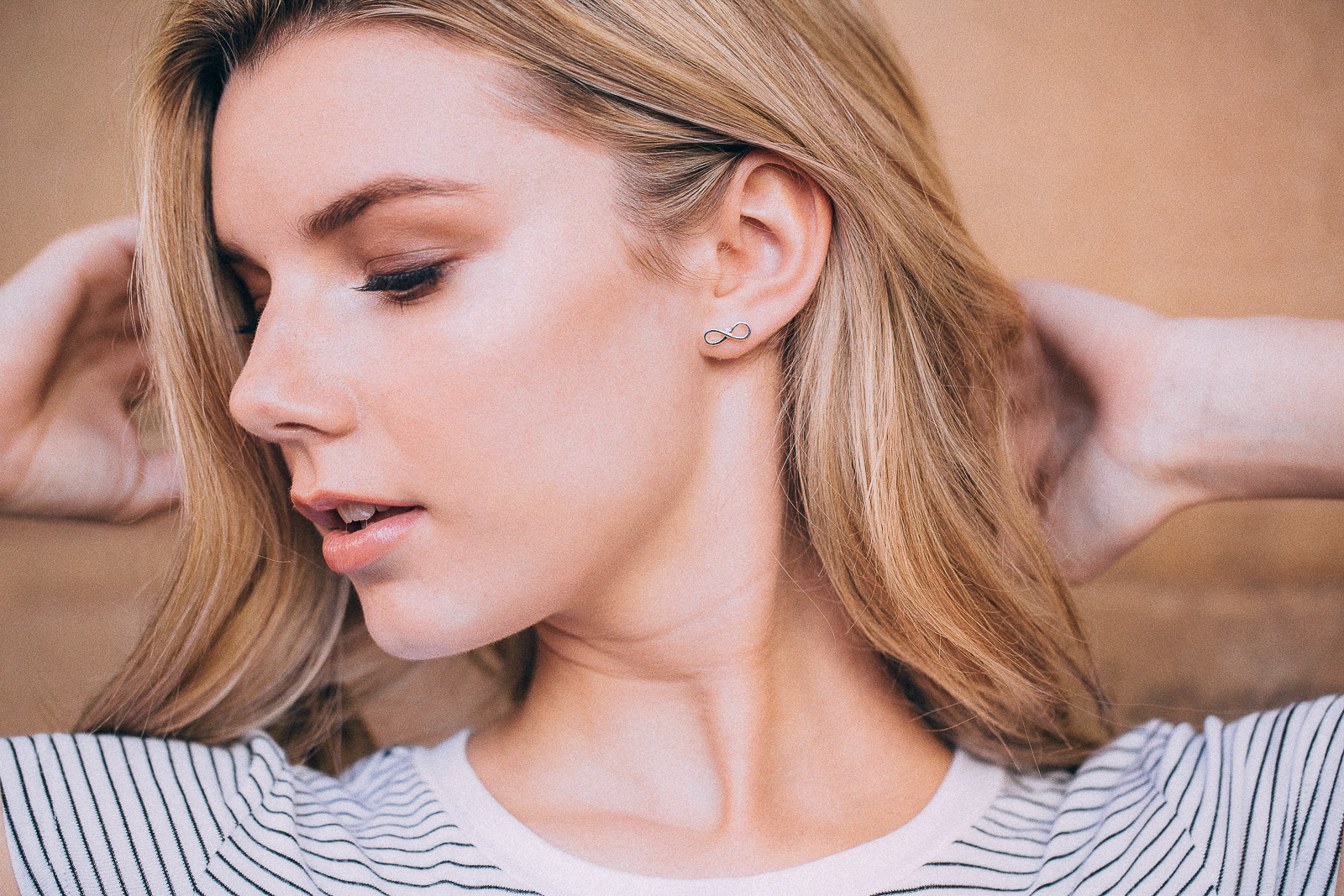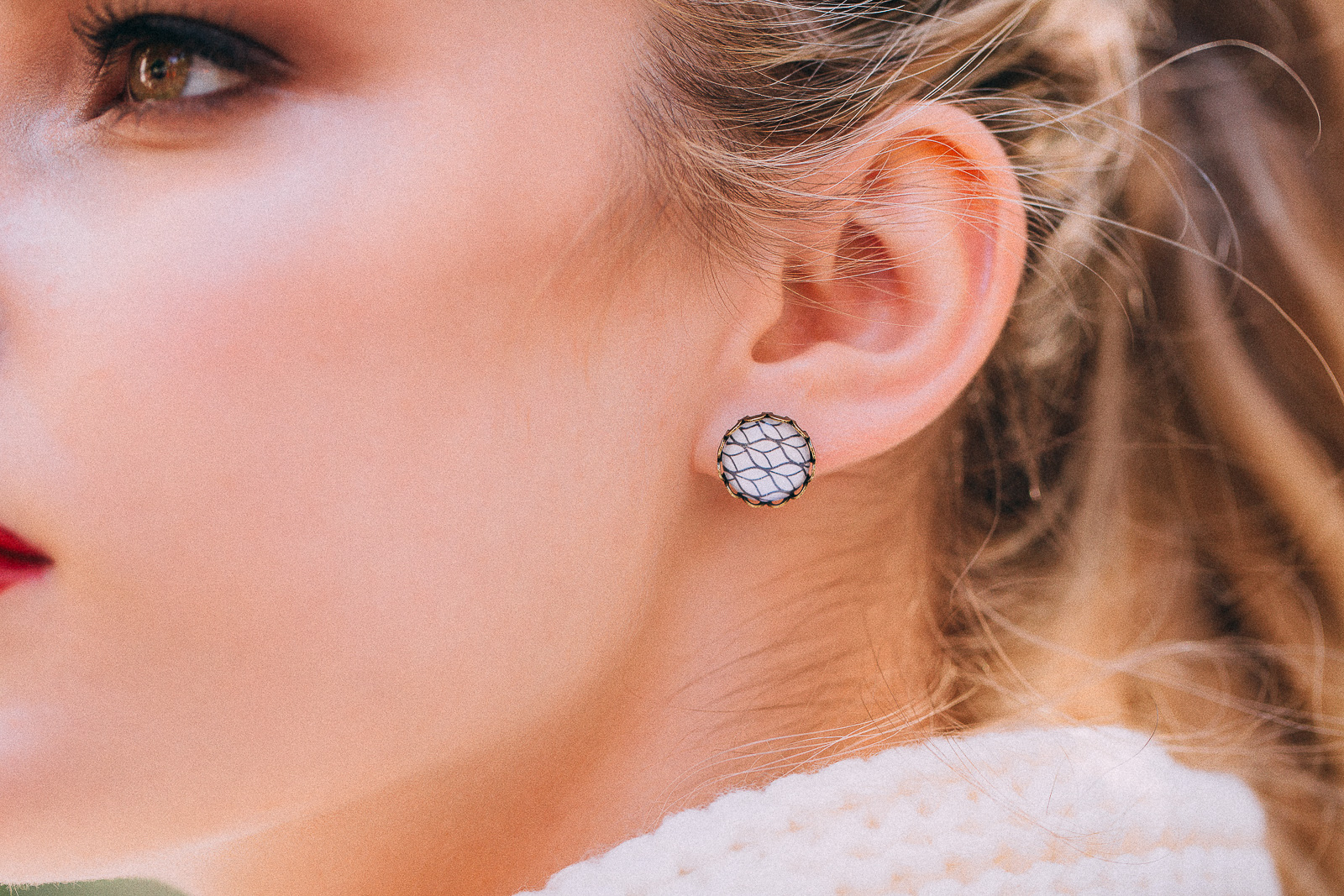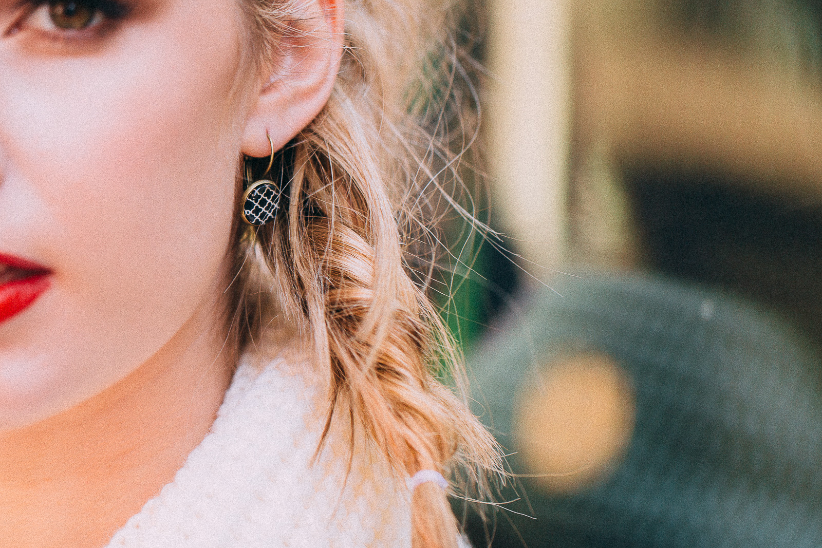 On the day we definitely made the most of our time. I took several lenses with me but decided to shoot with a 100mm 2.8 macro lens, as this meant I could quickly shift between portraits and detail shots without the need to switch lenses. Skye was always ready the entire time, with new earrings to go as soon as we needed them. Jo was on hand to make adjustments to the makeup, as well as a total change part way through the shoot to give us more variety in the look. By shooting with one earring on each ear we were able to get through many pairs.