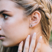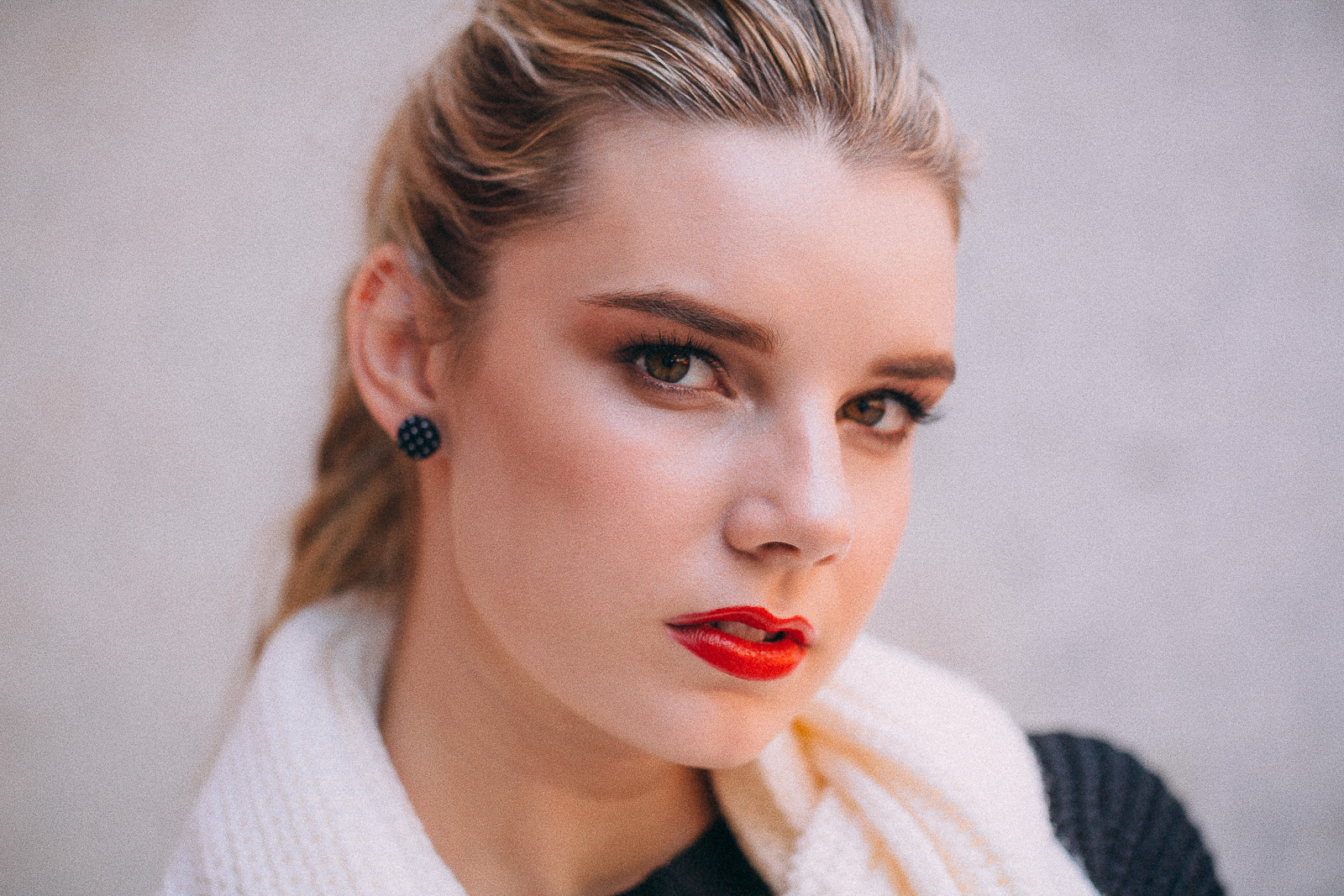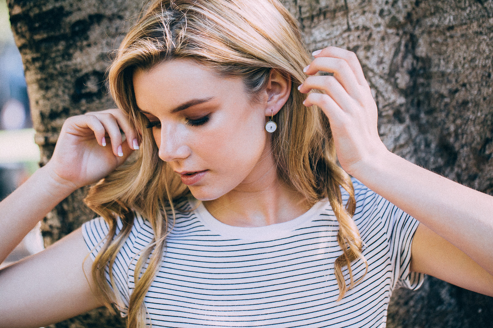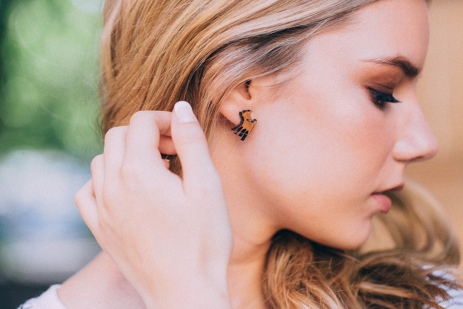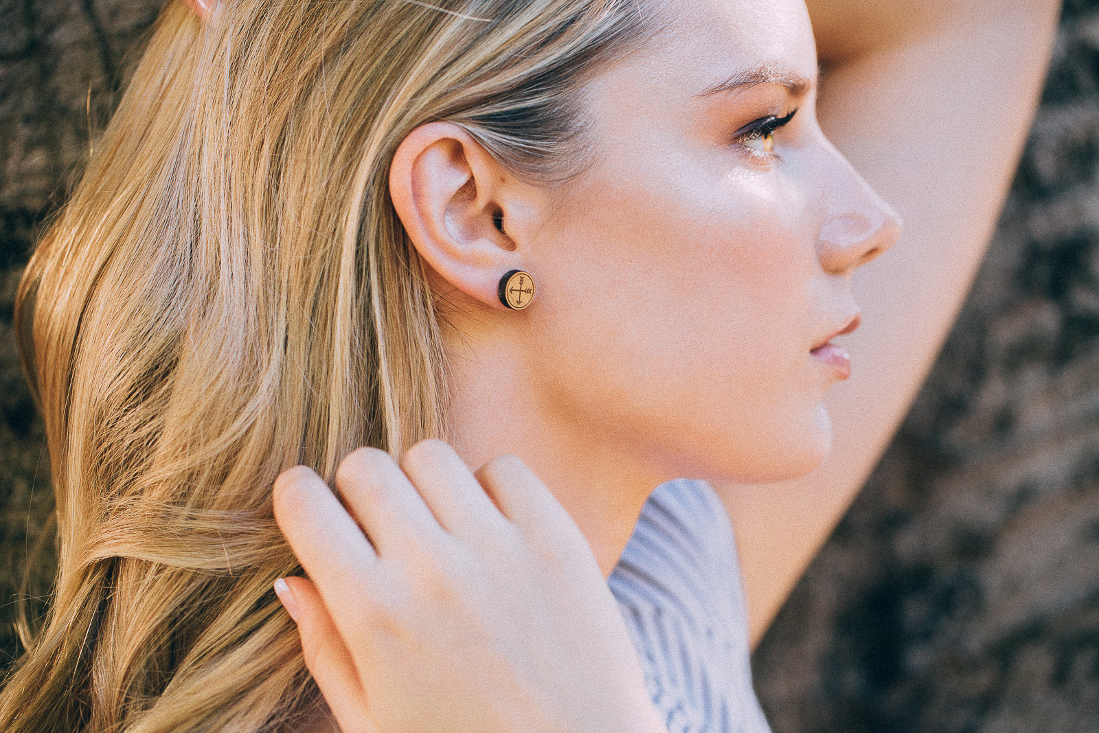 On the day we definitely made the most of our time. I took several lenses with me but decided to shoot with a 100mm 2.8 macro lens, as this meant I could quickly shift between portraits and detail shots without the need to switch lenses. Skye was always ready the entire time, with new earrings to go as soon as we needed them. Jo was on hand to make adjustments to the makeup, as well as a total change part way through the shoot to give us more variety in the look. By shooting with one earring on each ear we were able to get through many pairs.
